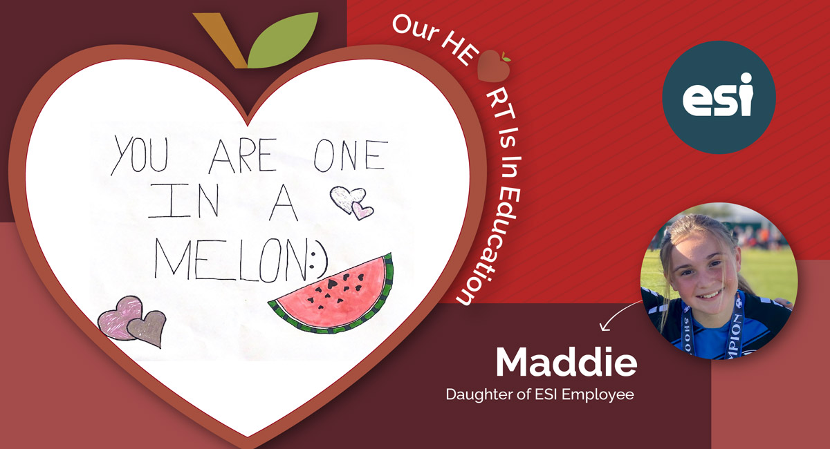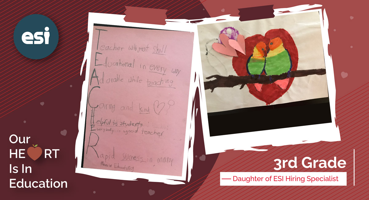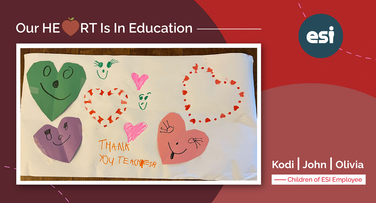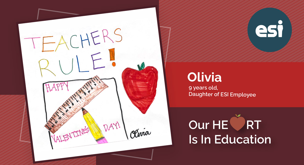 Our heart is in education. We hope you enjoy the Valentine's Day Love from the ESI children in our lives. Your value to our community is beyond measure, and we wanted to share our appreciation, and theirs, with you.